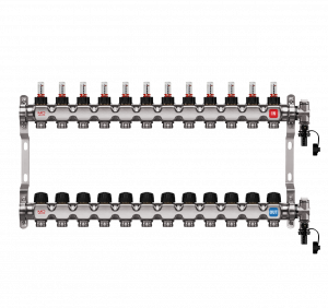 Edelstahl-Heizkreisverteiler mit zwölf Heizkreisen