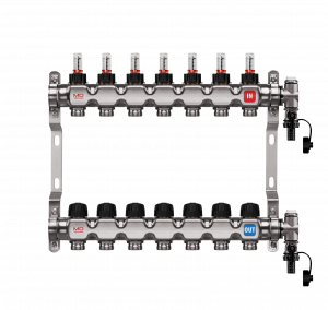 Edelstahl-Heizkreisverteiler mit sieben Heizkreisen