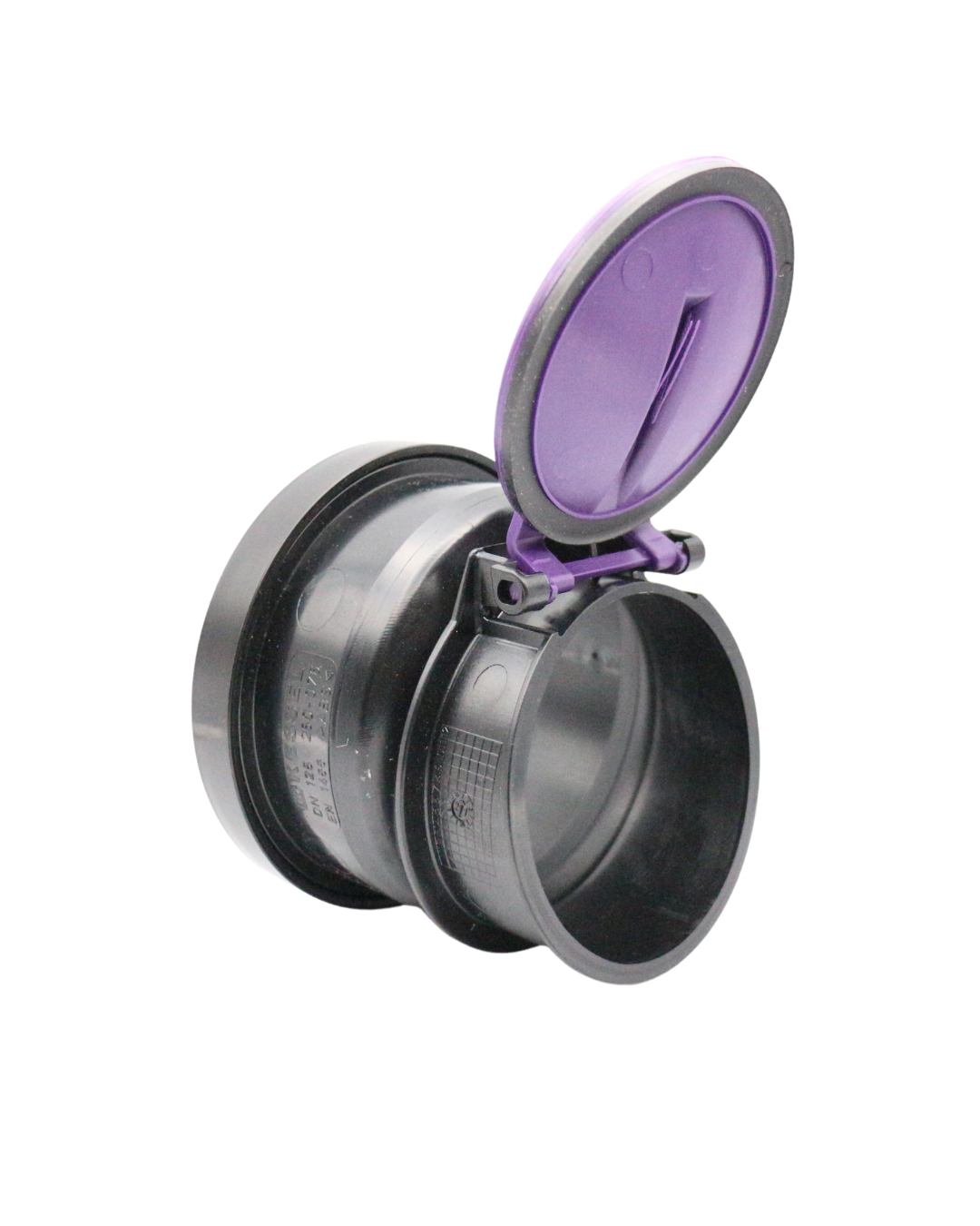 Die Rohrklappe dient als Schlussstück und besitzt eine mechanische Klappe, die selbsttätig schließt.
