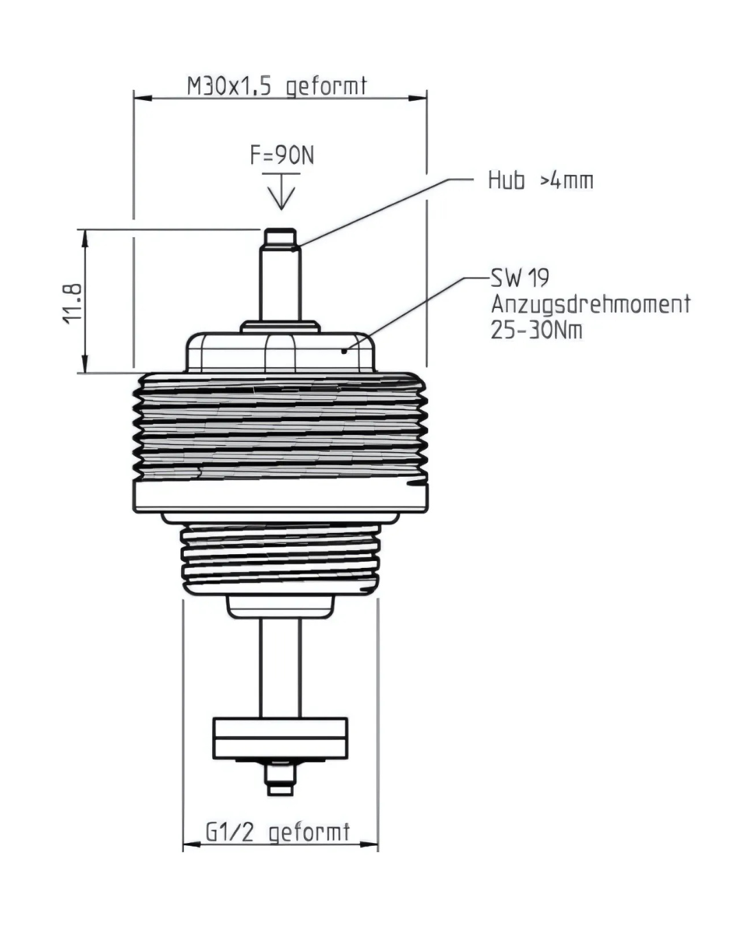 - Aufnahmegewinde für Stellantrieb: M30 x 1,5 mm